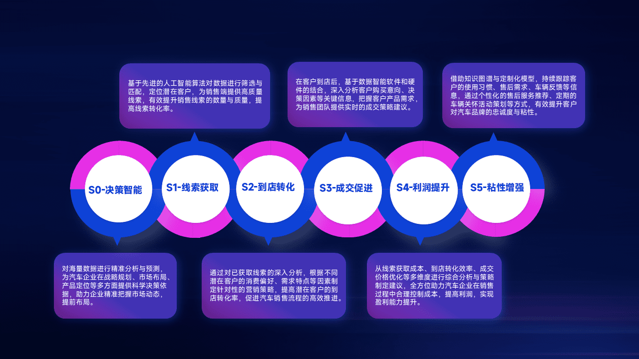 通过拓宽潜在客户来源、、优化线索分配并提高到店转化率,,,,以增强销售效率。。。同时,,利用线索数据不断优化分析模型,,有效提升转化率,,,扩大营销影响力。。。